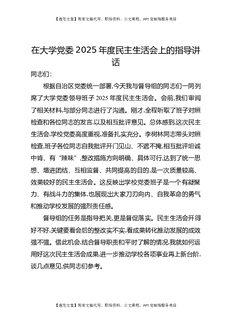 在大学党委2025年度民主生活会上的指导讲话.docx