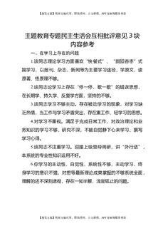 主题教育专题民主生活会互相批评意见3块内容参考.docx