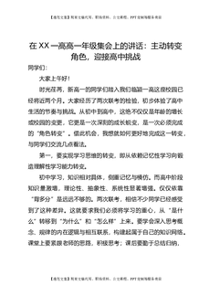 在XX一高高一年级集会上的讲话:主动转变角色,迎接高中挑战.docx