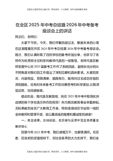 在全区2025年中考总结暨2026年中考备考座谈会上的讲话.docx