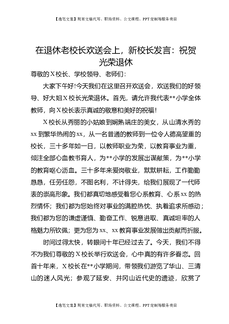 在退休老校长欢送会上,新校长发言:祝贺光荣退休.docx