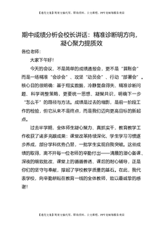 期中成绩分析会校长讲话:精准诊断明方向,凝心聚力提质效.doc