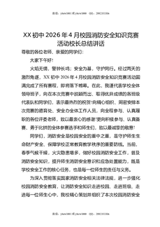 XX初中2026年4月校园消防安全知识竞赛活动校长总结讲话.docx