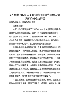 XX初中2026年4月预防校园暴力事件应急演练校长总结讲话.docx