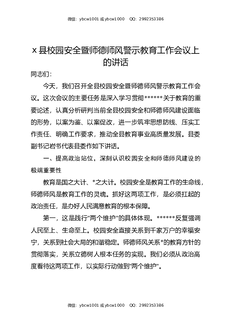 X县校园安全暨师德师风警示教育工作会议上的讲话.docx