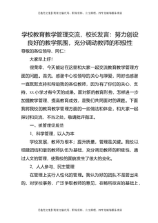 学校教育教学管理交流,校长发言:努力创设良好的教学氛围,充分调动教师的积极性.docx