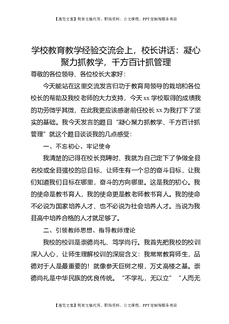 学校教育教学经验交流会上,校长讲话:凝心聚力抓教学,千方百计抓管理.docx