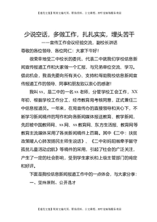 宣传工作会议经验交流,副校长讲话:少说空话,多做工作,扎扎实实,埋头苦干.docx