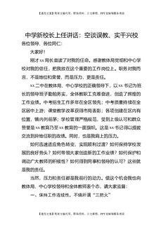 中学新校长上任讲话:空谈误教、实干兴校.docx