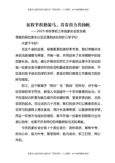 征程半程勤策马,青春鼎力共扬帆——2025年秋季初三家长会发言稿.docx