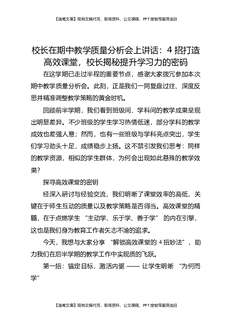 校长在期中教学质量分析会上讲话:4招打造高效课堂,校长揭秘提升学习力的密码.docx