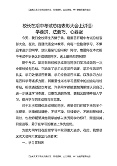 校长在期中考试总结表彰大会上讲话:学要拼、法要巧、心要坚.docx