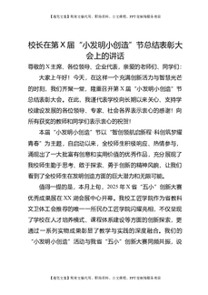 校长在第X届“小发明小创造”节总结表彰大会上的讲话.doc