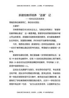 校长论坛交流发言:新建校教师培养“逆袭”记.docx