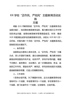 XX学校“正作风、严校风”主题教育活动实施方案.docx
