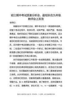初三期中考试质量分析会,副校长在九年级教师会上发言.doc
