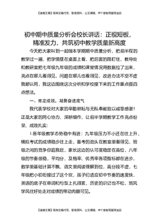 初中期中质量分析会校长讲话:正视短板,精准发力,共筑初中教学质量新高度.docx