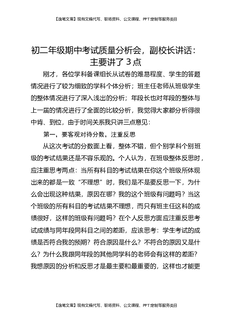 初二年级期中考试质量分析会,副校长讲话:主要讲了3点.docx