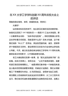 在XX大学工学学科创建XX周年庆祝大会上的讲话.docx