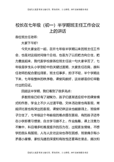 校长在七年级(初一)半学期班主任工作会议上的讲话.docx