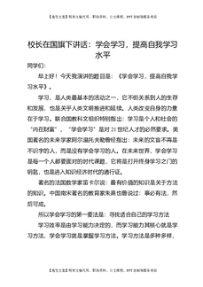 校长在国旗下讲话:学会学习,提高自我学习水平.docx
