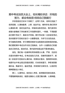 期中考试动员大会上,校长精彩讲话:所有的努力,都会有收获;相信自己我能行