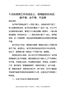 X月份德育工作总结会上,德育副校长讲话:能干事、会干事、干成事.docx