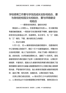 德育培训结束后,副校长讲话:学校德育工作要与学生的成长实际相结合,要与各校的校园文化相结合,要与师德建设相结合.docx