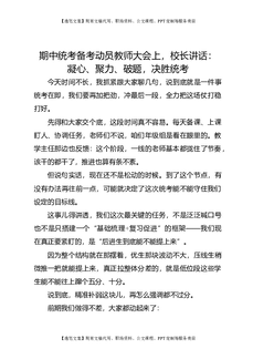 期中统考备考动员教师大会上,校长讲话:凝心、聚力、破题,决胜统考.docx