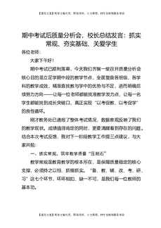 期中考试后质量分析会,校长总结发言:抓实常规、夯实基础、关爱学生.docx