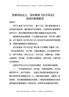 在教师会议上,校长解读《孙子兵法》,来启示教育教学.docx