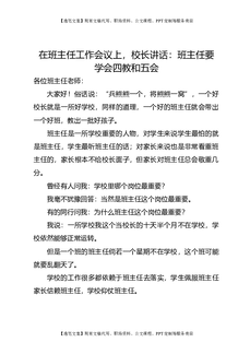 在班主任工作会议上,校长讲话:班主任要学会四教和五会.docx