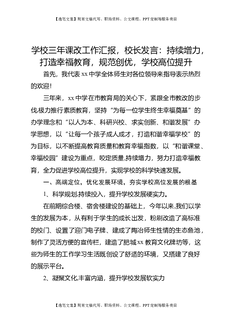 学校三年课改工作汇报,校长发言:持续增力,打造幸福教育,规范创优,学校高位提升.docx