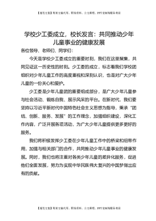 学校少工委成立,校长发言:共同推动少年儿童事业的健康发展.docx