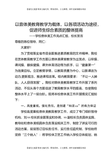 学校音体美工作亮点汇报,校长发言:以音体美教育教学为载体,以各项活动为途径,促进师生综合素质的整体提高.docx