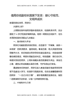 值周总结副校长国旗下发言:凝心守规范,文明共成长.doc