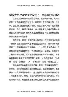 在学校大思政课堂成立仪式上,中小学校长讲话.docx