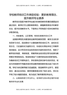 学校教师培训工作典型经验:更新教育理念,提升教师专业素养.docx