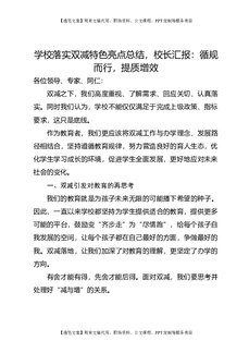 学校落实双减特色亮点总结,校长汇报:循规而行,提质增效.docx