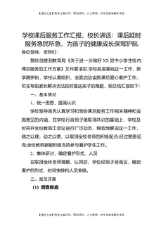 学校课后服务工作汇报,校长讲话:课后延时服务急民所急,为孩子的健康成长保驾护航.docx