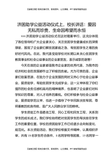 济困助学公益活动仪式上,校长讲话:爱因无私而珍贵,生命因希望而永恒.docx