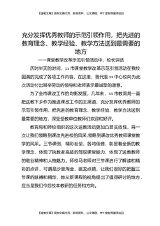 课堂教学改革示范引领活动中,校长讲话:充分发挥优秀教师的示范引领作用,把先进的教育理念、教学经验、教学方法送到最需要的地方.docx