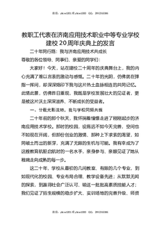 教职工代表在济南应用技术职业中等专业学校建校20周年庆典上的发言.docx