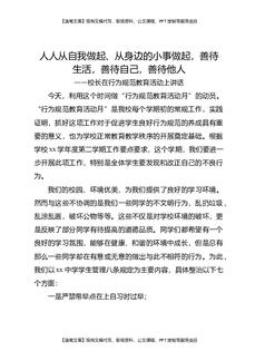 校长在行为规范教育活动上讲话:人人从自我做起、从身边的小事做起,善待生活,善待自己,善待他人.docx