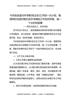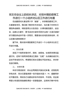 班主任会议上,校长讲话:今天的会是对本学期(班主任)工作的一次小结,我想同时也是对我们后半学期的工作如何开展,做一个分析和部署.docx