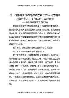 副校长在德育工作汇报发言:每一位德育工作者都应该在自己专业化的道路上刻苦学习,不停钻研,大胆开拓.docx