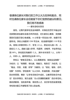 家长会校长发言:敬请各位家长对我们的工作以大力支持和配合,同时也请各位家长会后能留下你们宝贵的建议和意见,我们将不胜感激.docx