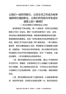 校长在德育工作教师会议上讲话:让我们一起共同努力,让班主任工作成为有幸福感有价值的职业,让我们共同成为学生成长道路上的一盏明灯.docx