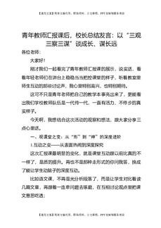 青年教师汇报课后,校长总结发言:以“三观三察三谋”谈成长、谋长远.docx