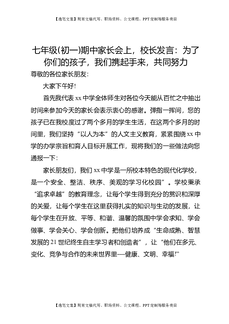 七年级(初一)期中家长会上,校长发言为了你们的孩子,我们携起手来,共同努力.docx